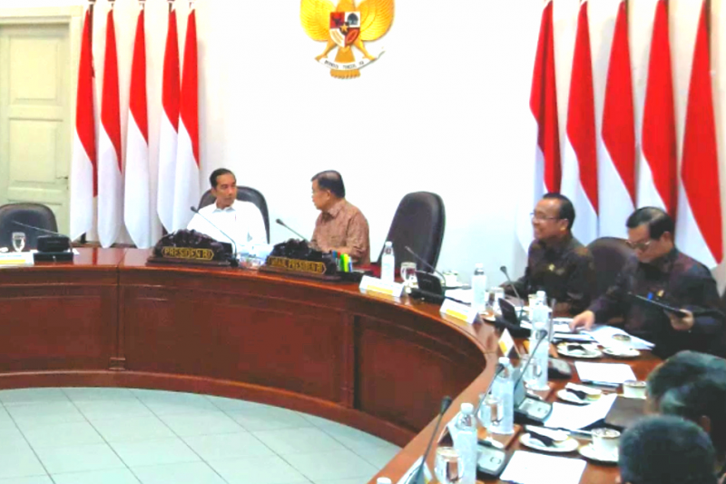 Wakil Presiden RI Jusuf Kalla mendampingi Presiden Jokowi dalam rapat itu.