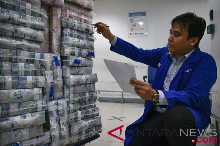 Karyawan menghitung tumpukan uang rupiah di Cash Center Bank Mandiri, Jakarta, Kamis (19/7/2018). Bank Indonesia memutuskan mempertahankan suku bunga acuan BI 7-day Reverse Repo Rate sebesar 5,25 persen sebagai upaya mempertahankan daya tarik pasar keuangan domestik dan menjaga stabilitas khususnya nilai tukar rupiah. (ANTARA /Sigid Kurniawan) Baca Kelanjutan Lagi Suku bunga acuan BI tetap : https://ift.tt/2zUif5kBagikan Berita Ini