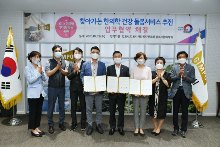 [한의신문=최성훈 기자] 김포시한의사회(회장 조용식)와 김포시청(시장 정하영), 김포시사회복지협의회(회장 조선희)가 지난 29일 의료취약계층을 위한 ‘찾아가는 한의학 건강 돌봄서비스’ 업무협약을 맺었다.